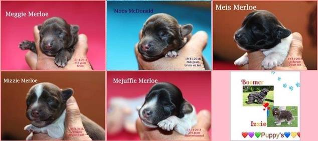 Bruin,bruin met tan,bruinschimmel,blauwschimmel met tan en zwart-wit.